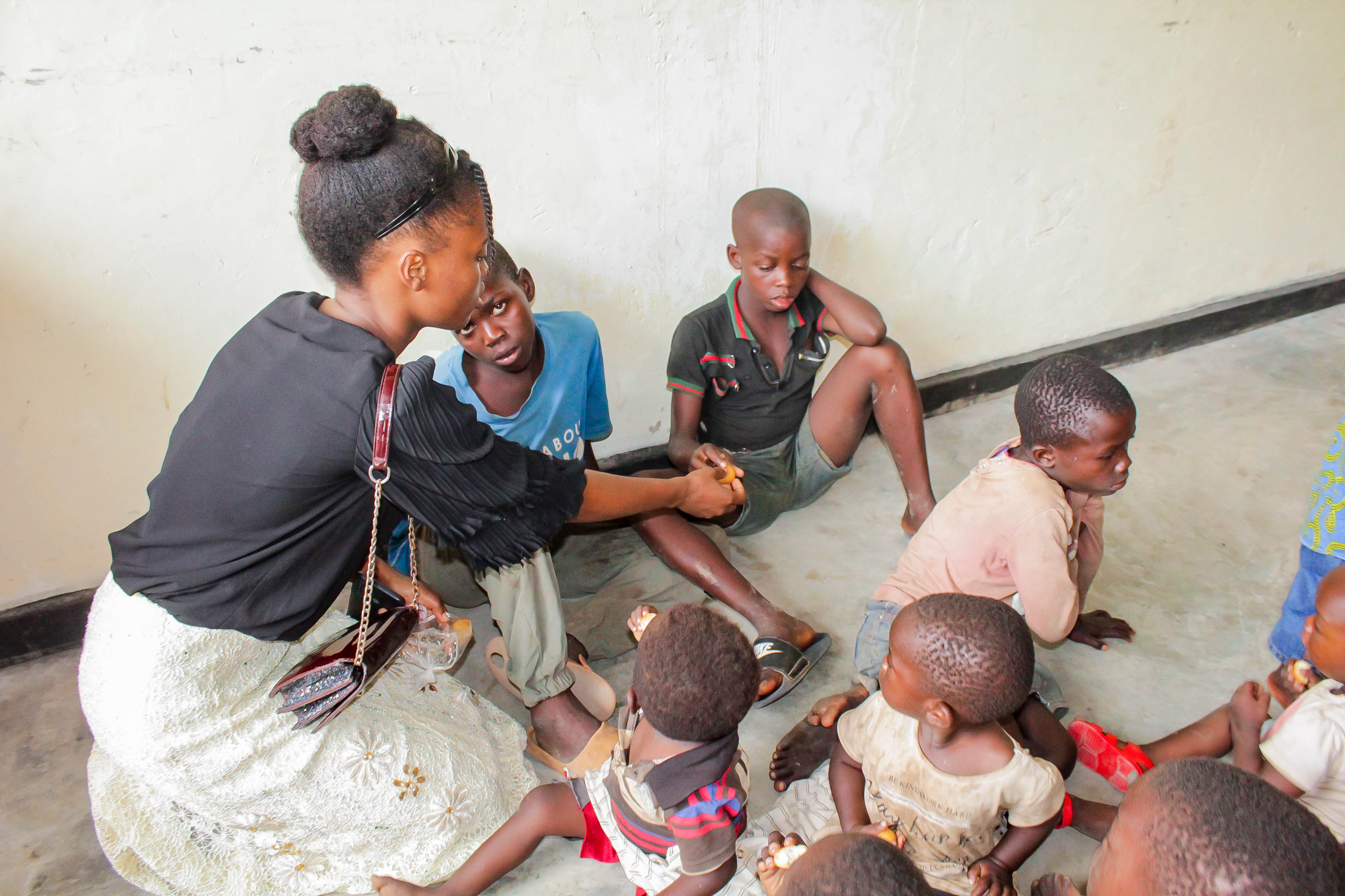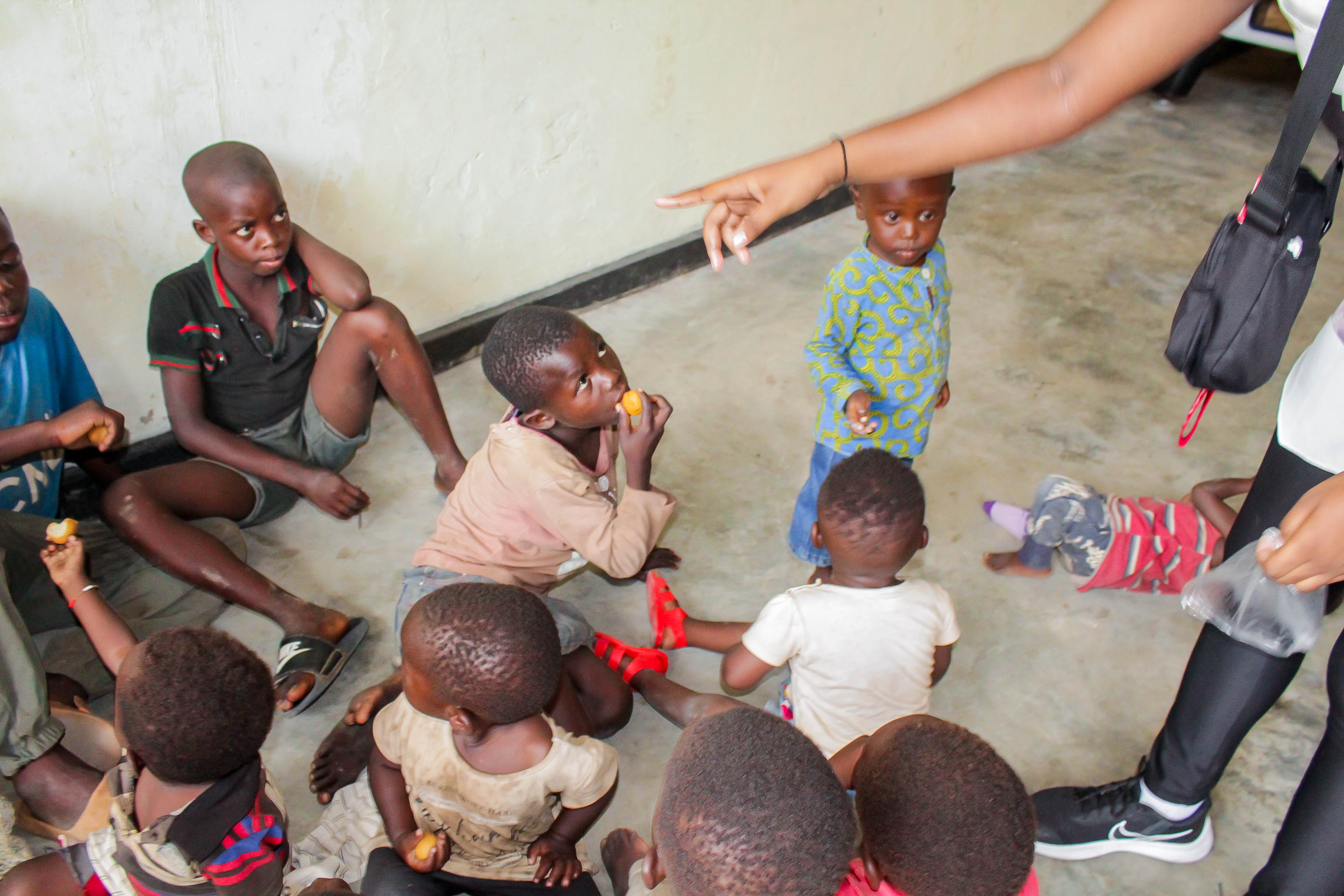 Children of the Batwa Community receiving snacks during OSKDA’s visit